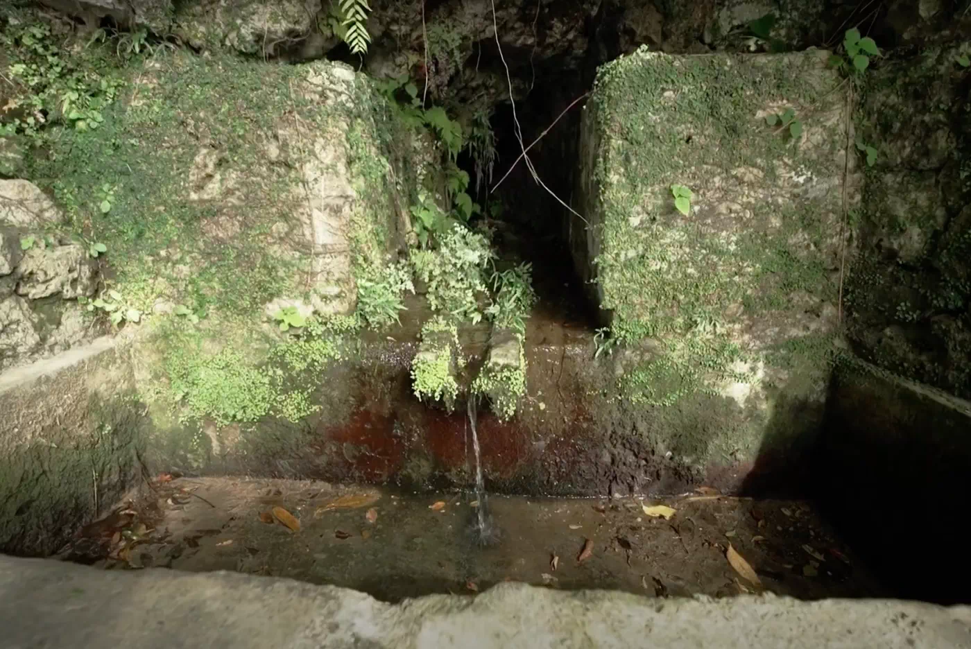 さくの川は、急な崖の下から湧き出る地下水を、導き出した共同井戸です。